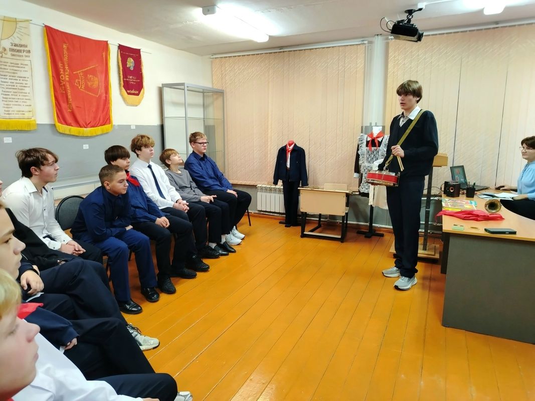 С 10 по 13 ноября в рамках юбилейных мероприятий прошли музейные уроки, посвящённые истории пионерского движения в Покровской школе. Ребята 10 и 11 класса познакомили учеников с атрибутами и символикой пионерской жизни, экспонатами- подлинниками советского периода. Почетный гость этих уроков - Тюрдеева Надежда Феоктистовна, работавшая старшей пионервожатой в 80-е годы. Она рассказала об активной общественной жизни пионерской дружины нашей школы: о тимуровском движении, о сборе макулатуры и металлолома, о шефской работе, дежурстве и многих других добрых делах пионеров.